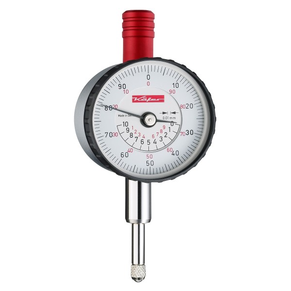 Mechanical Dial Gauge KAEFER BLET which has a range of 10mm, a reading at 0,01mm and a graduation between 0-100 (100-0) concentricmm-pointer