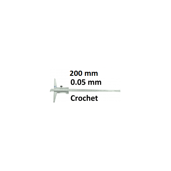 The Depth vernier caliper with hook is made of stainless steel, scale and nonius satin chrome finished, scale and nonius satin chrome finished. It has an accuracy of 0.02 mm a range of measurement of 200 mm, shockproof.