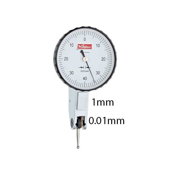 Dial test indicator KAEFER BLET which has a length of 16.6mm, a range of 1mm, a reading of 0.01mm and a bezel of 40mm
