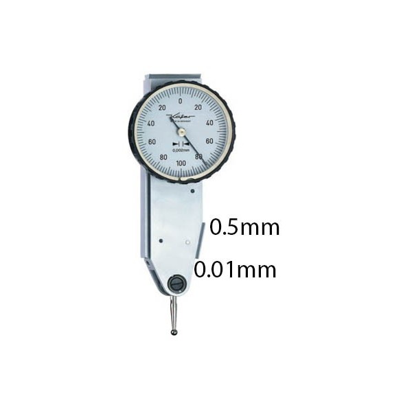 Dial test indicator KAEFER BLET which has a length of 35.7mm, a range of 0.5mm, a reading of 0.01mm and a bezel of 40mm