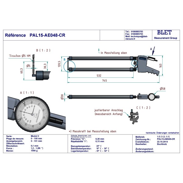 Resolution : 0,01 ; Measuring span Mes : 0-20 mm ; Superior touch : CR0,4 ; Inferior touch : CR0,4