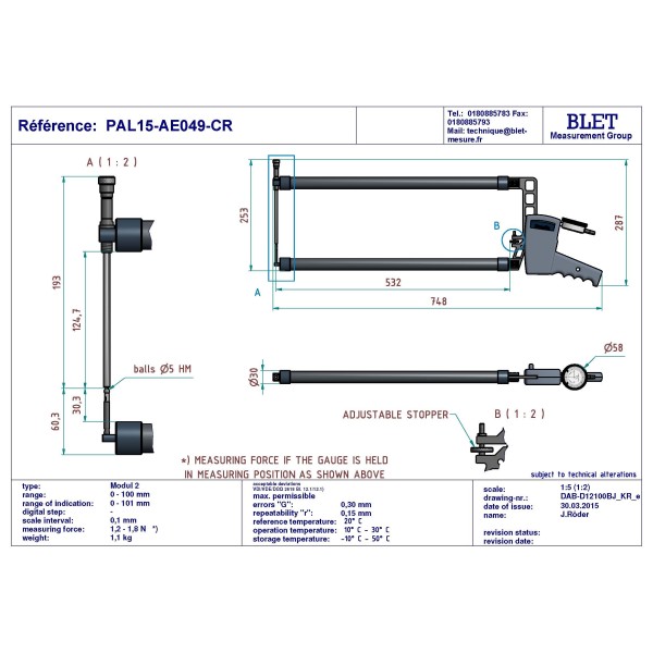 Resolution : 0,05 ; Measuring span Mes : 100-150 mm ; Superior touch : S3 ; Inferior touch : S3