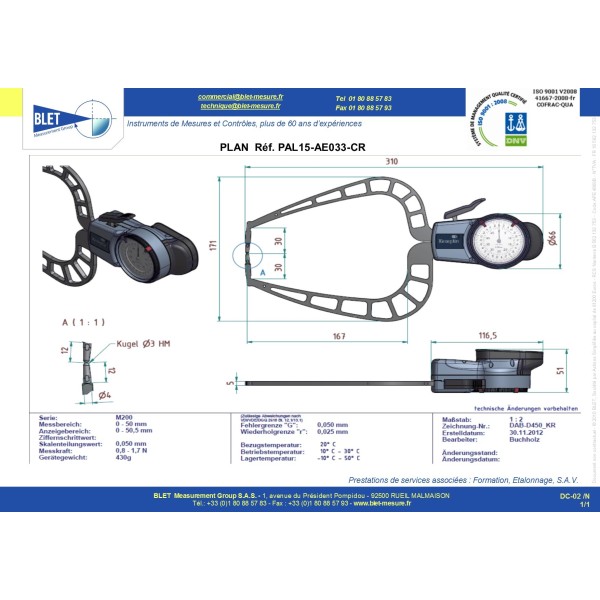 The controllers of thicknesses KROEPLIN allow the analog or digital measure of various ranges of measure going from 0 to 200 mm of diverse surfaces and materials, thanks to a variety of forms and sizes of mobile or fixed touches such as sphere, hemisphere, knife, or record, thanks to fixed or mobile touches and different depths of arm.