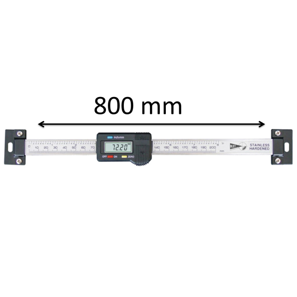 This BLET digital ruler made with stainless and hardened steel have a length of 800 mm. It is perfect to be placed on all your machines to measure the horizontal movement. It has an output facilities and can be reset to 0 at any position.