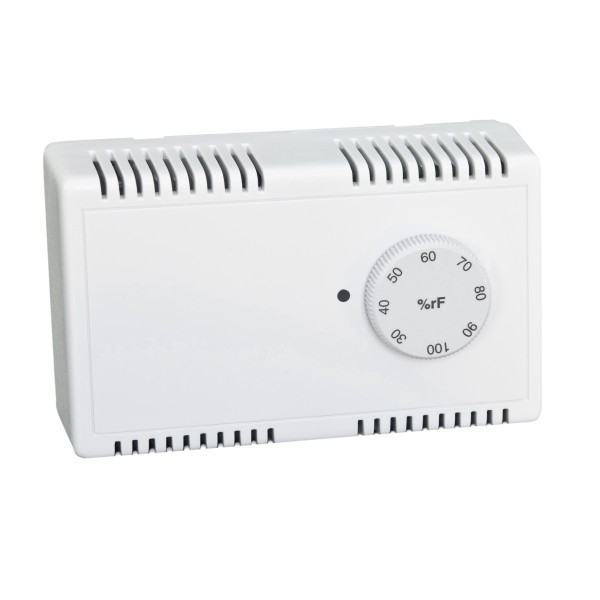 Controller for the regulation of the relative air humidity in climate ducts. Operating range: 35-95% h. rel. Accuracy: +/-3% h. rel.