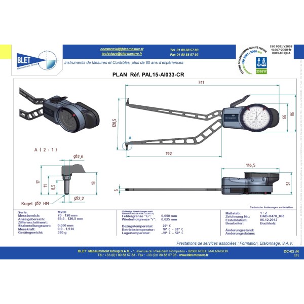 The internal gauge KROEPLIN allows the measure by mechanical or electronic display of diameters or internal dimensions, with a range of measure going from 2,5 to 400 mm, thanks to fixed or mobile touches and different depths of arm