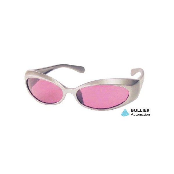 Laser protection glasses with nylon frame and polycarbonate lens, of dimensions 138x39x155 mm.