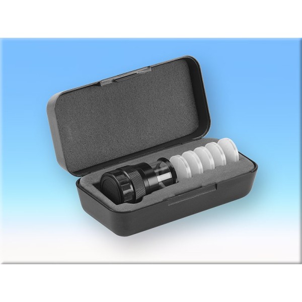 The set includes measuring magnifier 1975. Scales No. S-1975-2, S-1975-3, S-1975-7, S-1975-8 and S-1975-10 are included. The scales can be put together as required (see overview). Surcharge for white scales. These lenses are coated to prevent reflection.
