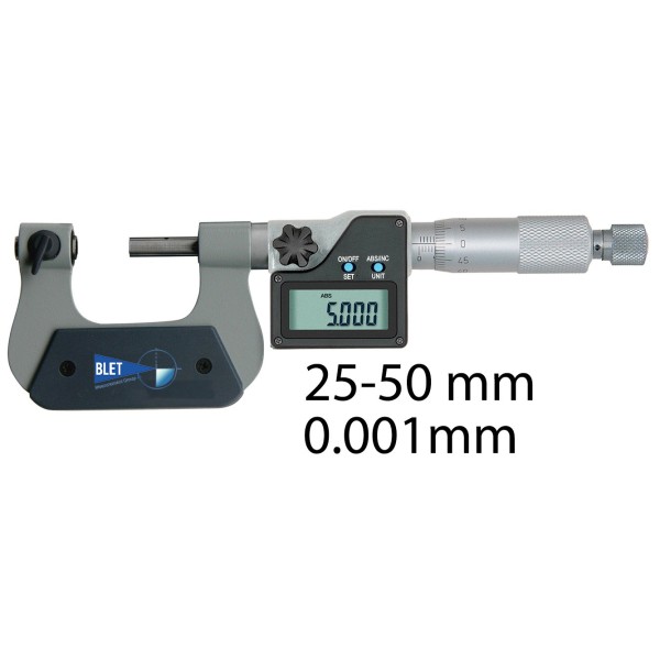 This micrometer is designed for the precise measure of external dimensions. It has a set of 7 interchangeable pairs of contact points. It is delivered in a case.