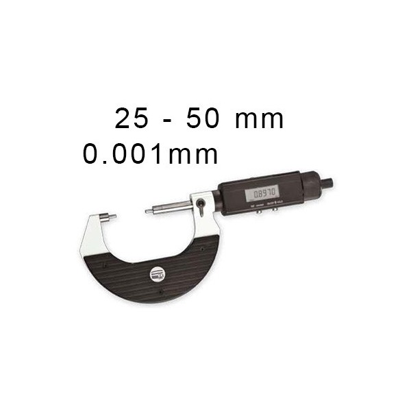 Digital display : Yes, Measuring range : 0-25 mm, Reading : 0,01 mm / 0,001 mm, Measuring face diameter : 3 mm, Pitch : 1 mm, Retraction : No