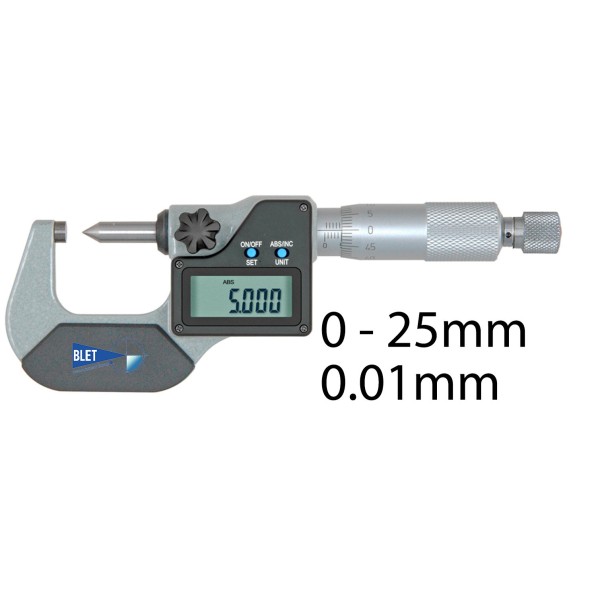 Quick view Add to compare New mail Sur demande MICROMETER WITH POINT/BLADE BLET Ref : MICXX-D9001MCP Availability: Out of stock Price €408.00 Add to cart Quick view Add to compare Availability: Out of stock Range: 0-25mm, Reading: 0.001mm, Thread pitch: 0.5mm