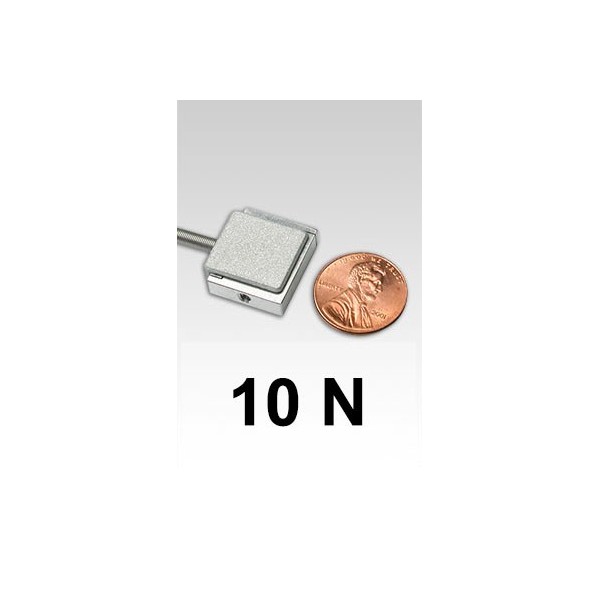 Extremely compact force measurement sensor for tensile and compressive loads in applications with limited space. The Series R04 is available in capacities from 0.25 to 100 lbF (1 to 500 N). Every capacity has the same miniature dimensions. The sensors feature outstanding mechanical overload protection and threaded holes on two sides for the mounting of attachments or implements.