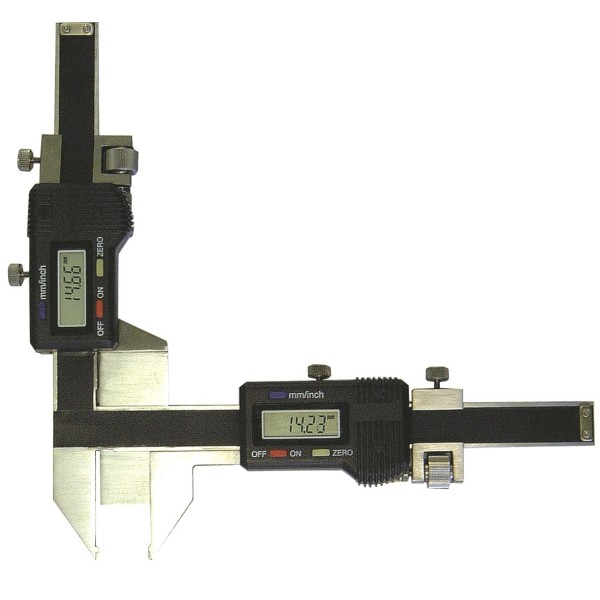 This digital caliper is designed to measure the thickness of gears. It features a fine adjustement screw and is delivered in its case.