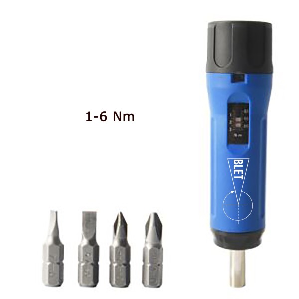 BLET's economical analog torque screwdrivers come with four easy-to-change bits. They operate clockwise and counterclockwise.