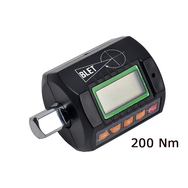 BLET torque adapters operate both clockwise and counterclockwise. An alarm warns when the requested torque is reached. A large screen allows easy readings. 4 units of torque can be used: kgf.cm, N.m, lbf.ft, lbf.in. Battery operated with 2 AAA batteries (not included). The devices turn off automatically after 10 minutes of no action.