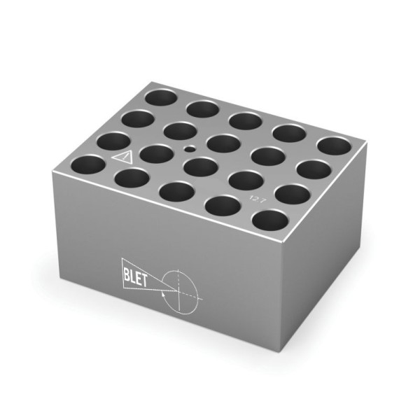 Nombre de trous : 8, Diamètre des trous : 21,0 mm, Type de verrerie : Tubes à fond rond 20 mm, Dimensions : 95 x 76 x 51 mm, Profondeur des trous : 48,4 mm