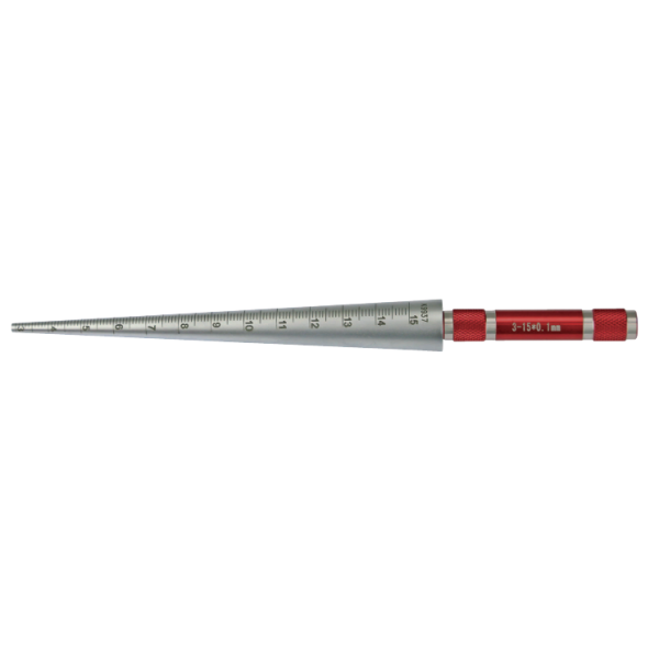 The BLET graduated bore gauge enables precise measurement of the inside diameter of bores. The cone is in chromed steel and the handle in anodized aluminum.