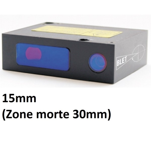 The BLET super compact Laser Triangulation Sensor allows non-contact measurement of displacements, dimensions, surface profiles, deformations, object vibrations or liquid level measurements. This reference has an RS232 / 0...10V output, a 3m cable and a 660nm red laser. Other models on request. Dimensions max : 170x61x31mm. Max frequency (depends on the measuring range) : 60/120/180 kHz