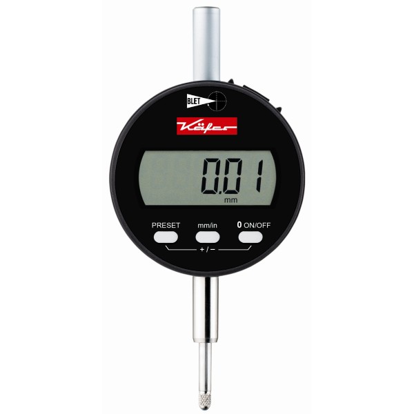 Comparateur digital KAEFER BLET ayant une course de 12.5 mm, une lecture à 0.01 mm et une taillle de cadran de 50 mm. L'erreur maximale est de 20 microns. Ce comparacteur est une exclusivité BLET !