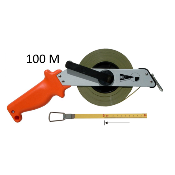 Longueur: 100 m Precision: mm Largeur: 13mm Classification CE: classe II Support: Support droit avec une poignée coudée. Type d'extrémité: 0 crochet boucle