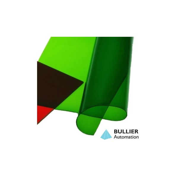 Flexible laser protection filter made of PVC ; comes as a 0.7mm thick, 33cm wide and up to 10m long (50cm unit) roll.