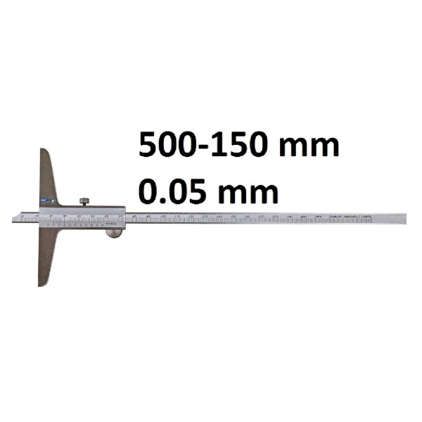 The Depth vernier caliper is made of stainless steel, scale and nonius satin chrome finished, scale and nonius satin chrome finished. It has an accuracy of 0.05 mm a range of measurement of 500 mm, shockproof.