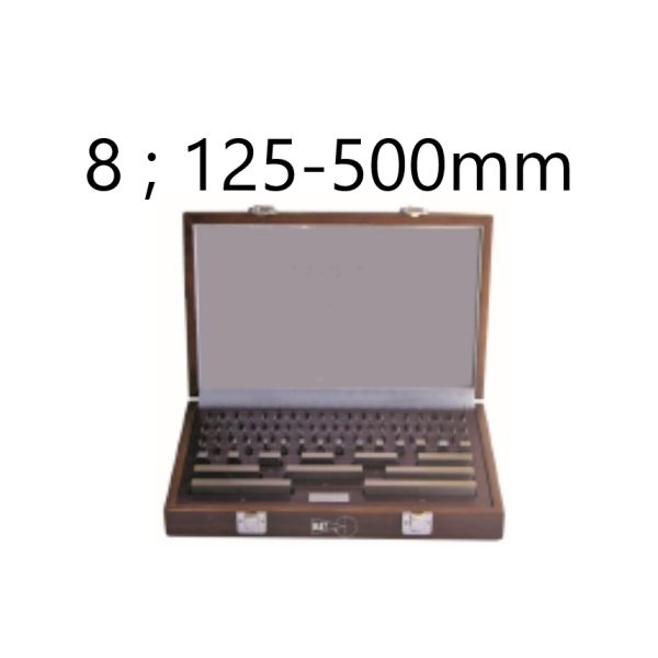 Materials : Steel ; Number of wedges : 122 ; Wedge dimensions : 1 x 1,0005 / 9 x 1,001 ? 1,009 / 49 x 1,01 ? 1,49 / 4 x 1,6 ? 1,9 / 49 x 0,5 ? 24,5 / 8 x 30 ? 100 / 1 x 25 / 1 x 75