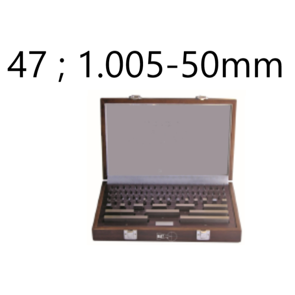 Set of 47 gauge blocks in reinforced steel of accuracy class 2 size 1,005-100mm delivered in a case