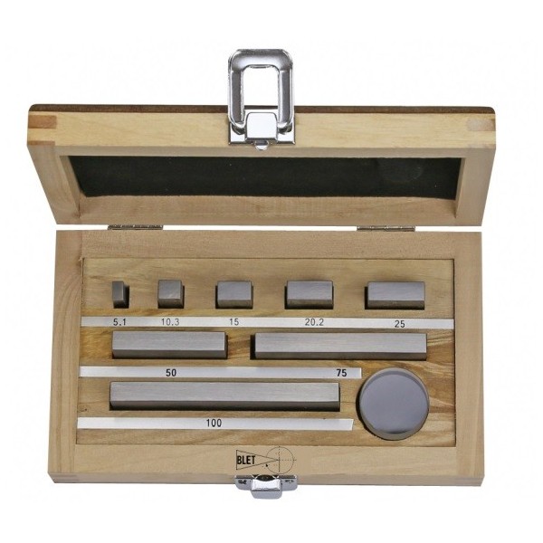 Gauge block sizes : 5,1 / 10,3 / 15,0 / 20,2 / 25,0 / 50 / 75 / 100 mm, Plane face glass : 30 mm