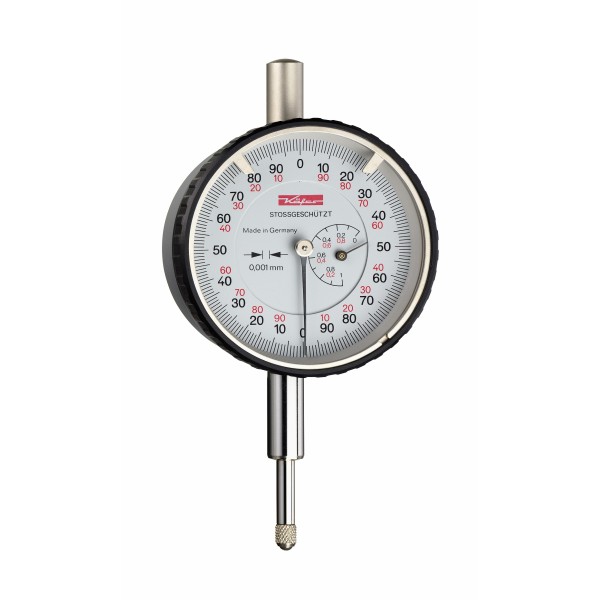 Comparateur mécanique KAEFER BLET ayant une course de 1mm, une lecture à 0,001mm avec graduations sur le cadran de 0-100 (100-0) et une taille de cadran de 58mm antichoc Exclusivité BLET ref famille : FM 1000 S Retrouvez toutes les précisions techniques supplémentaires pour les comparateurs sur :