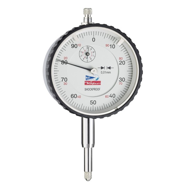 Comparateur mécanique KAEFER BLET ayant une course de 10mm, une lecture à 0,01mm avec graduations sur le cadran de 0-100-0 et une taille de cadran de 58mm ,antichoc étanche Exclusivité BLET ref famille : MU 52 ST Retrouvez toutes les précisions techniques supplémentaires pour les comparateurs sur :