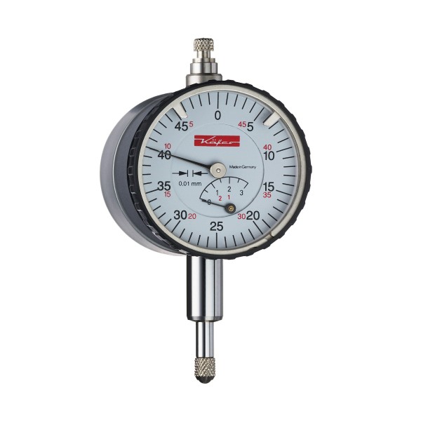 Comparateur mécanique KAEFER BLET ayant une course de 3mm, une lecture à 0,01mm avec graduations sur le cadran de 0-50 (50-0) et une taille de cadran de 40mm dos magnetique Exclusivité BLET ref famille : KM 4 T Magnet Retrouvez toutes les précisions techniques supplémentaires pour les comparateurs sur :