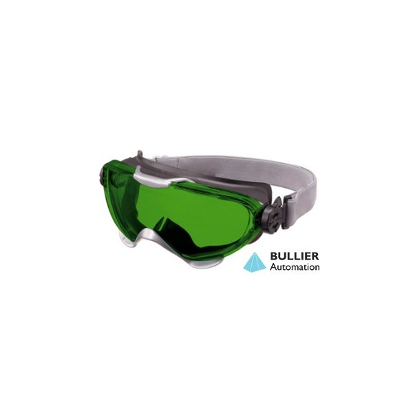 Masque de protection laser avec monture polypropylène et élastomère et verre polycarbonate et revêtement anti-buée de dimensions 192x83x92 mm.