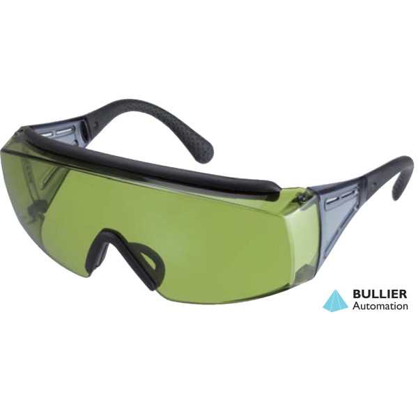 Sur-lunettes de protection laser avec monture polycarbonate et élastomère et verre polycarbonate, de dimensions 158x65x168 mm.