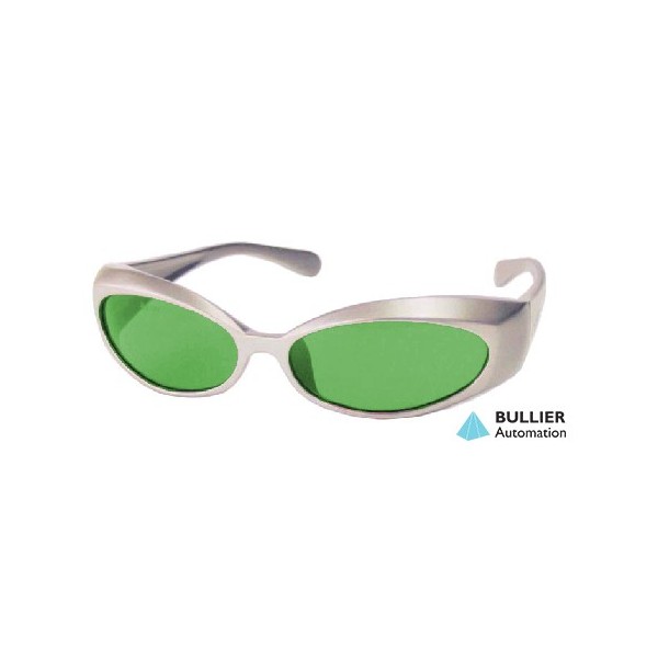 Lunettes de protection laser avec monture nylon et verre polycarbonate, de dimensions 138x39x155 mm.