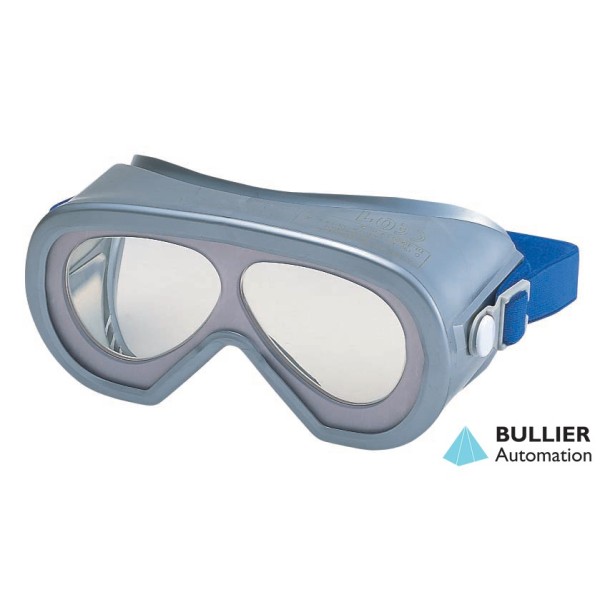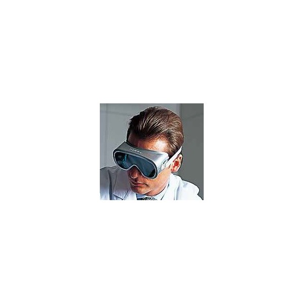 Masque de protection laser de dimensions 160x80x73 mm avec monture plastique laminé et métal et verres en verre feuilleté assurant une haute résistance.