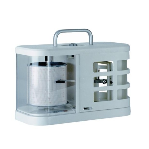 Instrument pour la mesure et l'enregistrement de la température ambiante. Les résultats de mesures sont enregistrés sur une bande de papier, qui est enroulé autour d'un tambour à horloge mécanique(1 / 7 / 14j) ou quartz (31j).