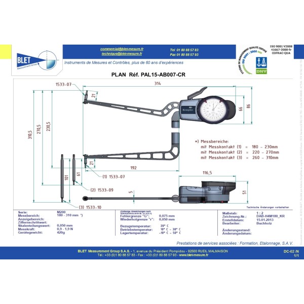 PALPEUR BAIONNETTE BLET KROEPLIN 90-140MM...