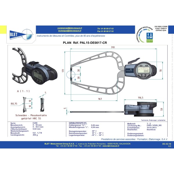 PALPEUR EXT BLET KROEPLIN 0-50MM 0,02MM TOUCHES...