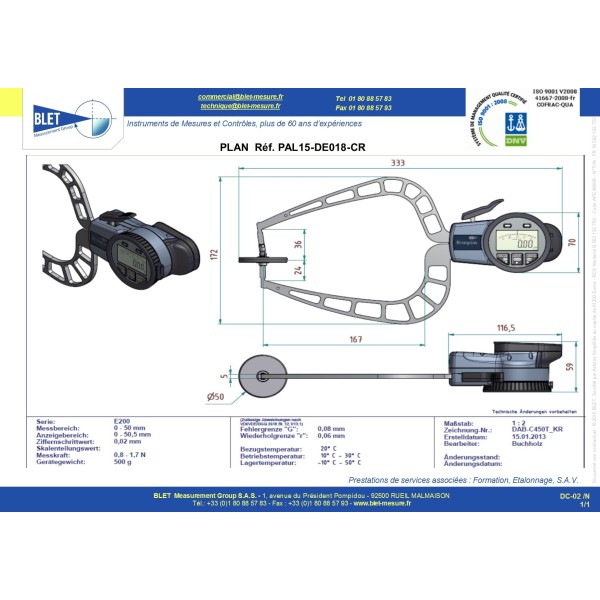 PALPEUR EXT BLET KROEPLIN 0-20MM 0,01MM TOUCHES...