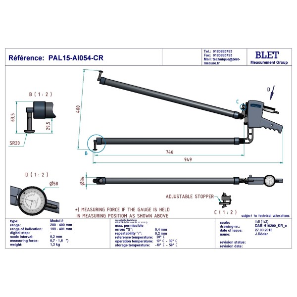 Les contrôleurs intérieurs KROEPLIN (pince de contrôle) permettent la mesure par affichage mécanique ou électronique de diamètres ou cotes internes variés, avec une plage de mesure allant de 2,5 à 400 mm, grâce à des touches fixes ou mobiles et différentes profondeurs de bras.