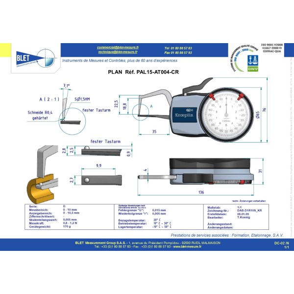 PALPEUR TUBE BLET KROEPLIN 0-10MM 0,005MM...