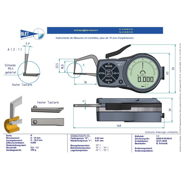 PALPEUR TUBE BLET KROEPLIN 0-30MM 0,02MM...