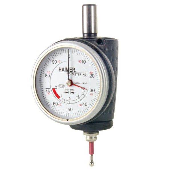 Le palpeur 3D nouvelle génération HAIMER est compact et muni d’un mécanisme plus élaboré que le palpeur 3D universel. Il est composé d’un boîtier compact et maniable, sans restriction de l’espace de travail. Il est muni d’un comparateur au 1/100 à deux aiguilles pour une grande précision et une lecture aisée. Le palpeur 3D compact HAIMER définit le positionnement de la broche par rapport aux arêtes de référence d’une pièce (axes X, Y et Z), et permet d’établir les origines. Il permet de dégauchir des arbres et des alésages, de mesurer des longueurs et des profondeurs, de contrôler la planéité et la rectitude, l’alignement des pièces, et le positionnement des gabarits et autres éléments de serrage.