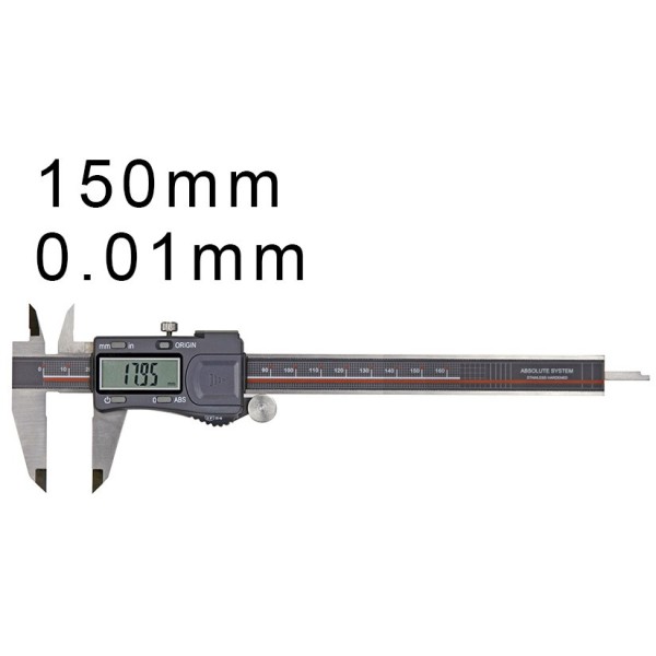 This digital caliper from BLET has no speed limit when moving and the display has an IP 54 protection. It has ON/OFF, 0/ABS, mm/inch and Origin button. It also has a depth gauge and is delivered in its case.