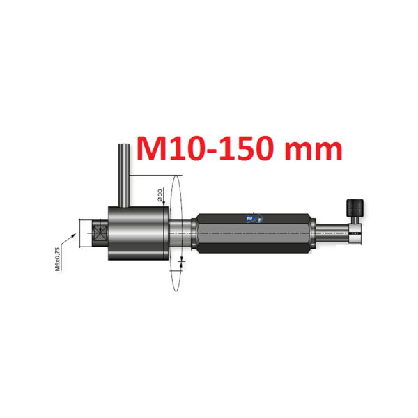 Le porte comparateur ou support de comparateur assure la liaison entre la partie mesurante et le comprateur pour un M10, avec une longueur de 150 mm. Il est utilisé avec les tampons de mesure d'alésage. Il est stabilisé en température. Il peut effectuer une rotation de 360°, pouvant ainsi mesure l'ovalité et les erreurs de formes géométriques.