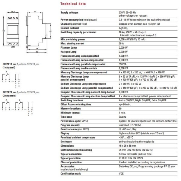 230V, 1 canal / 46 mémorisations Programmable par PC Montage rail-DIN 35 mm; ref famille : SC 28.11 pro