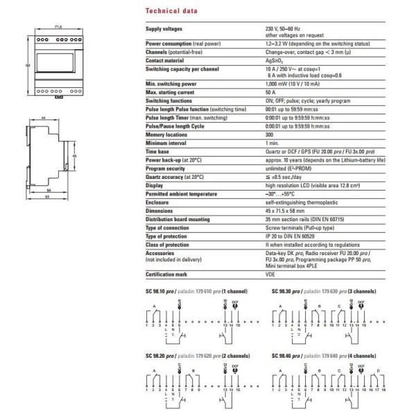 4 canaux / 300 mémorisations Programmable par PC Montage rail-DIN 35 mm Fonctions avancées; ref famille : SC 88.40 pro
