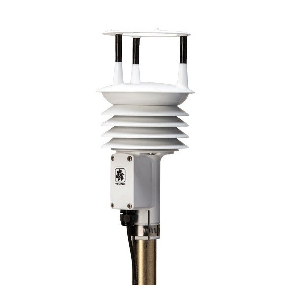 Station météo complète et compacte permettant la mesure de la vitesse et de la direction du vent, de la température, de l'humidité relative et de la pression atmosphérique, avec boussole électronique, dans un appareil haut de 30cm et large de 13.5cm, optimisé pour garantir un flux d'air ambiant sur les capteurs et assurer la protection contre les rayons solaires et les précipitations. Sortie série avec interface au choix parmi RS232 et RS485/422, aux formats texte ASCII, NMEA ou SDI-12, avec baud 1200, 4800, 9600, 19200, 38400. Pics anti-oiseaux amovibles inclus.